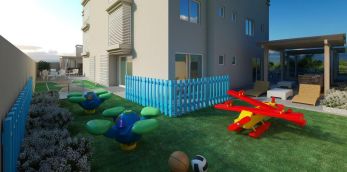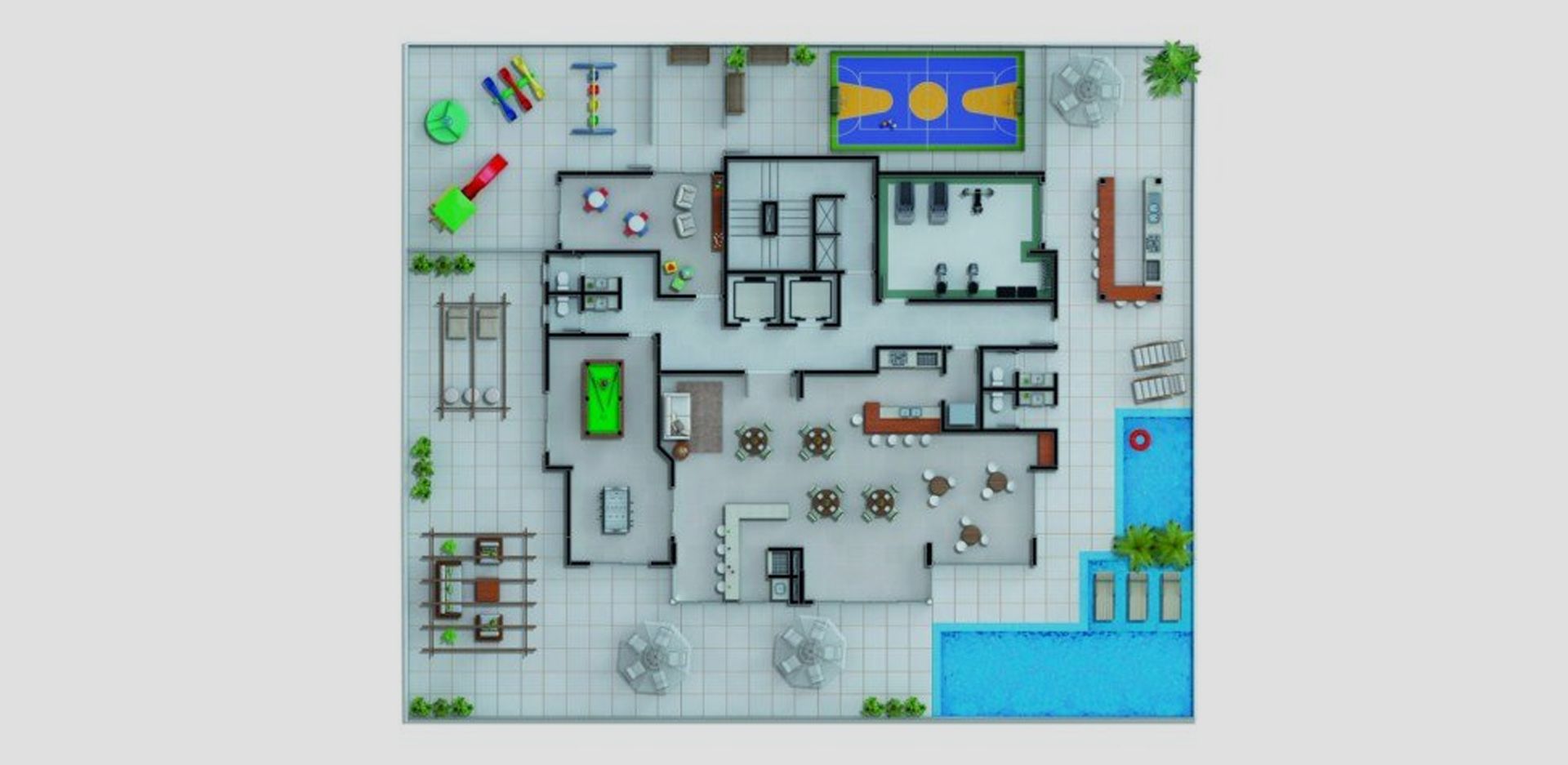 Piscina adulta e infantil e espelho d´agua com deck externo com ampla área ensolarada