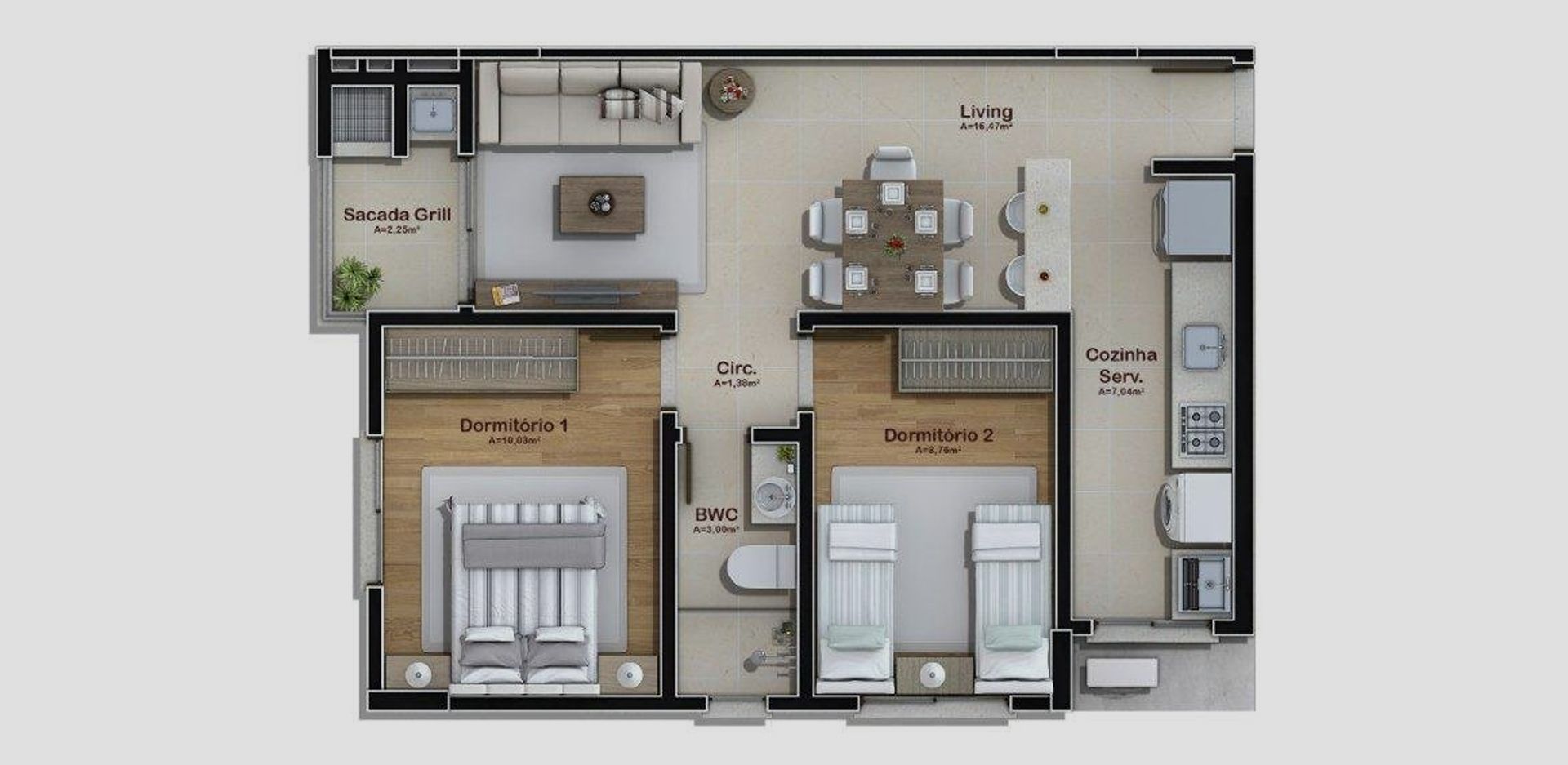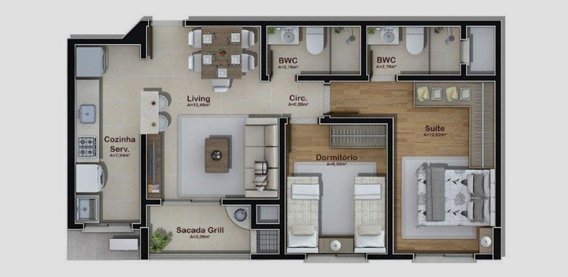 • 1 Suíte e 1 Quarto