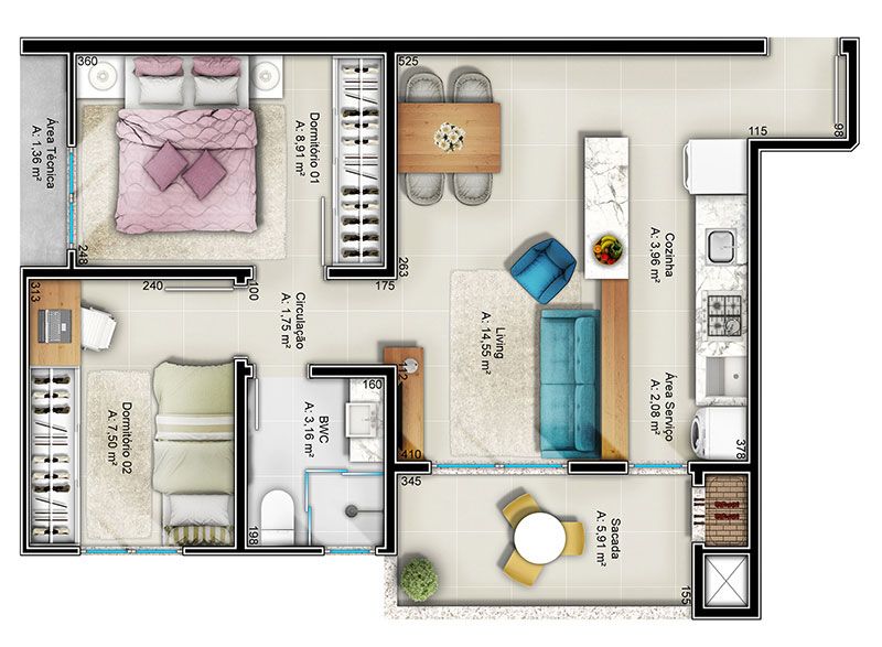 56.22m² de área privativa