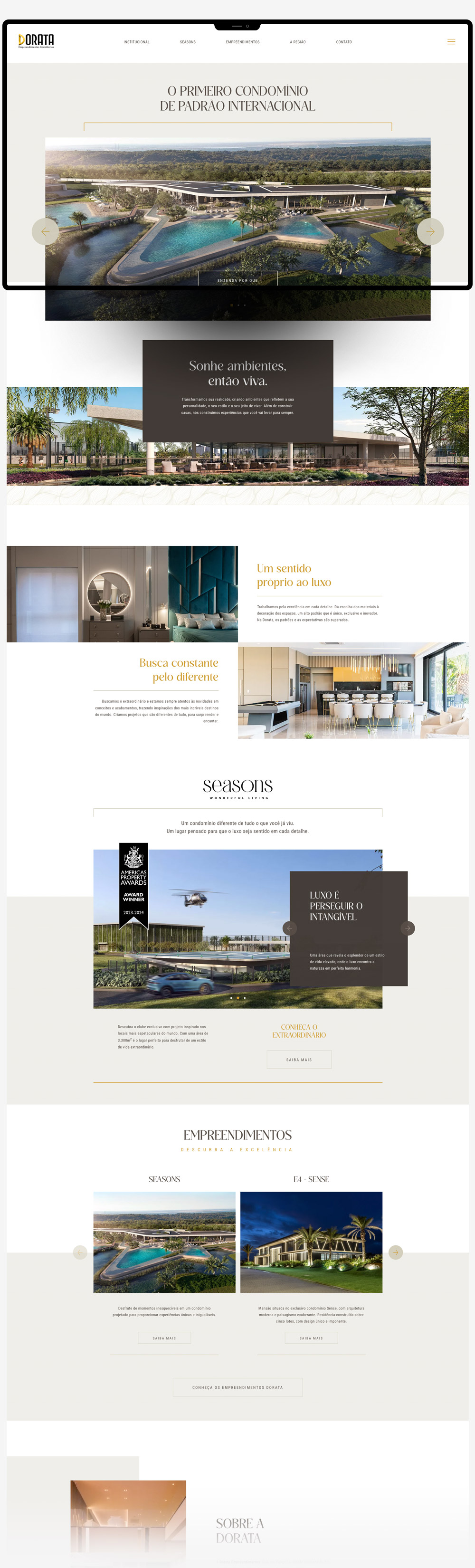 Localizada na cidade de Xangri-lá, no Rio Grande do Sul, a Dorata se tornou sinônimo de excelência no segmento imobiliário, concentrando seus esforços na construção de residências que transcendem o comum. No mais recente empreendimento, o Seasons - Wonderful Living, é a personificação desse comprometimento com a qualidade e o requinte.