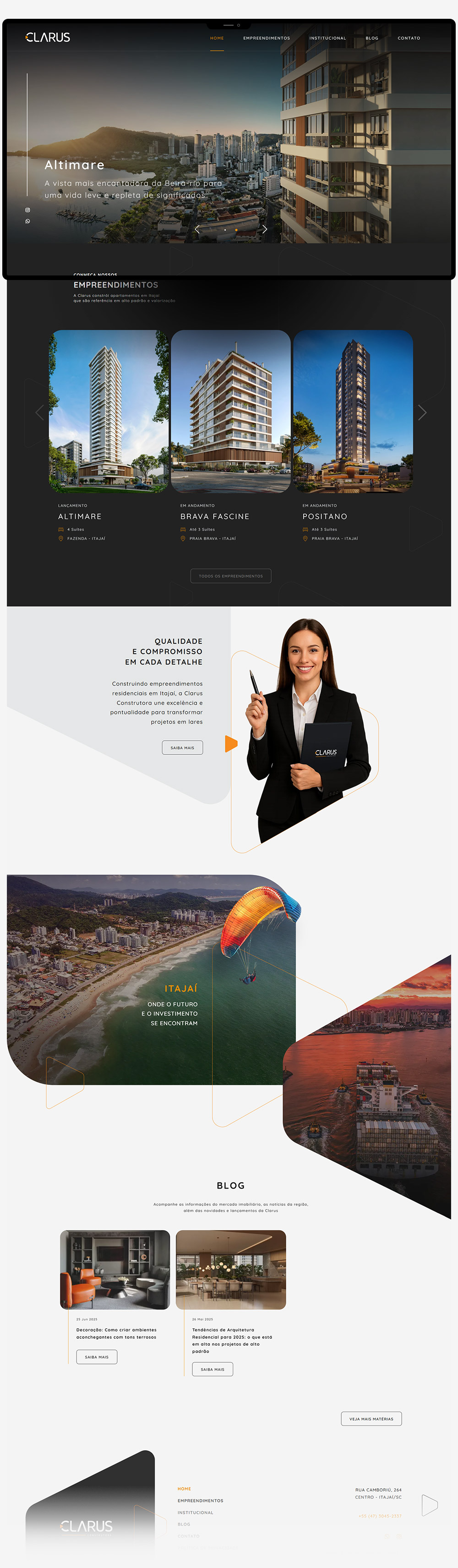 A QUAX teve a honra de desenvolver e assinar o novo website da Clarus Construtora, referência em empreendimentos de alto padrão na cidade de Itajaí (SC).