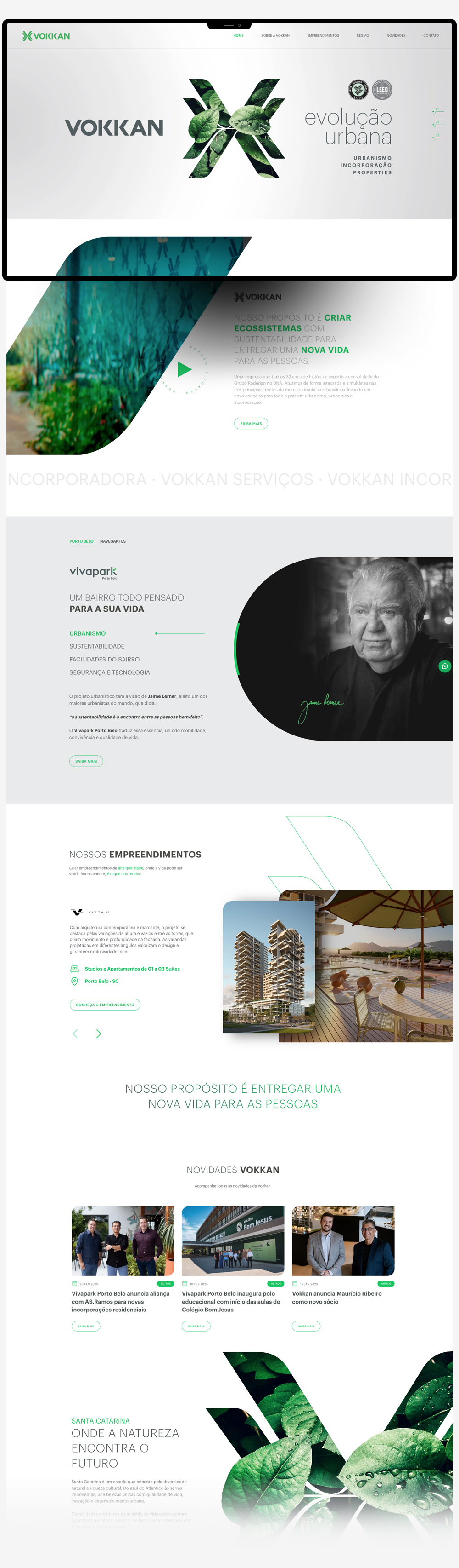 O novo site traduz o conceito de urbanismo inteligente por meio de um layout elegante, navegação fluida e usabilidade intuitiva, que reforçam a visão da Vokkan como referência nacional em desenvolvimento urbano contemporâneo.